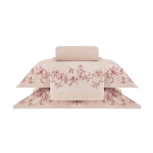 Conteúdo da embalagem:1 sobrelençol (280 x 270 cm); 1 lençol com elástico (193 x 203 x 40 cm); 2 fronhas (50 x 70 cm) N° Fios: 200 Fios