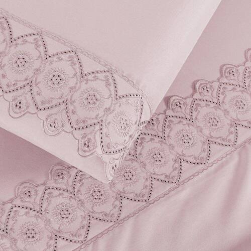 O Jogo de lençol para cama King com 04 peças confeccionado em tecido Micropercal 200 fios, detalhes em bordado inglês na fronha e no lençol de cima. Possui alto padrão de qualidade, proporciona conforto e sofisticação.