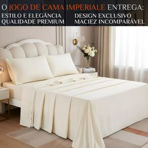 Imagine deitar-se em uma cama com toque sedoso, frescor natural e visual sofisticado. O Jogo de Cama Imperiale não é apenas enxoval, é um convite para noites tranquilas e cheias de bem-estar. Cada bordado traz um detalhe de requinte, transformando seu quarto em um verdadeiro cenário de revista. É o carinho que você merece depois de um longo dia.