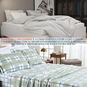 Feche os olhos e imagine: seu quarto iluminado por uma luz suave, a cama impecável, e o toque do Jasmine te abraçando. Isso não é só um jogo de cama - é um convite ao descanso que renova corpo e alma.