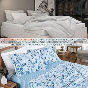 Feche os olhos e imagine: seu quarto iluminado por uma luz suave, a cama impecável, e o toque do Jasmine te abraçando. Isso não é só um jogo de cama - é um convite ao descanso que renova corpo e alma.