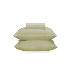 Jogo de Lençol King com Elástico e Fronhas Percal 100% Algodão Matiza Verde Chá