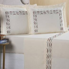 01 Lençol de cima com vira bordada 2,80m x 2,60m 01 Lençol de baixo com elástico para colchão de 2,03m x 1,98m x 40cm alt 02 Fronhas 70cm x 50cm
