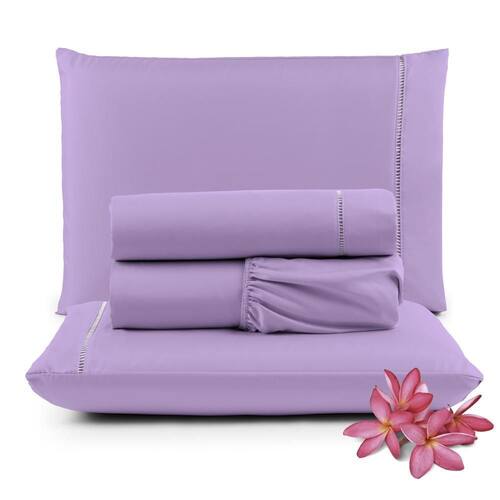 Jogo Cama Lençol Unique King 400 Fios Ponto Palito 4 Peças - Lilás