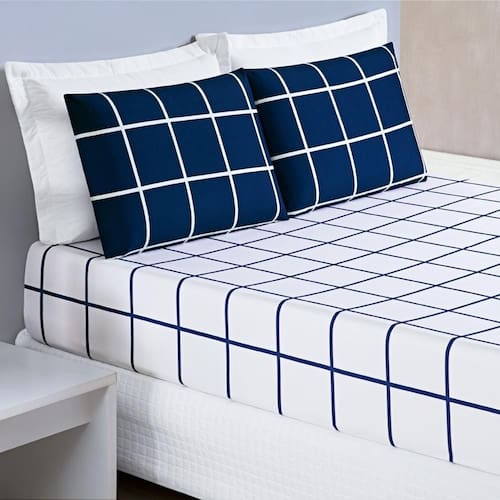 Jogo Cama Lençol Brooklyn Solteiro Quadriculado Micropercal 200 Fios 2 Peças - Azul Marinho