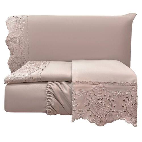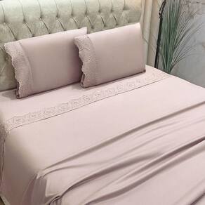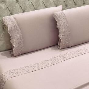 Jogo Cama Lençol Casa Scarpa Detail King Bordado Guipir Bordado Inglês Percal 300 Fios 4 Peças - Roxo Malva