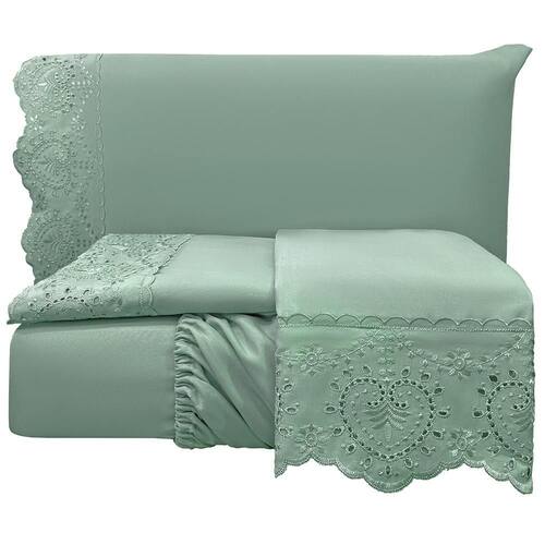 Jogo de Cama Lençol Casal Nupcial Percal 300 Fios 4 Peças - Verde Lençol Nupcial Bordado Tecido Toque de AlgodãoTransforme sua noite de núpcias em um momento ainda mais especial com o nosso Lençol Nupcial Bordado. Confeccionado com um tecido de toque suave de algodão, proporciona uma sensação de conforto e frescor incomparáveis.