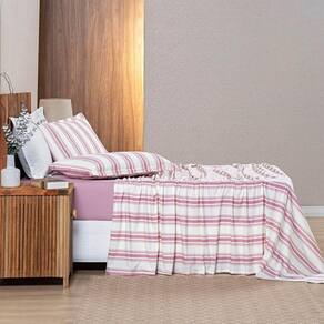 Jogo Cama Lençol Daily King Malha 100% Algodão Listrado 4 Peças - Rosê