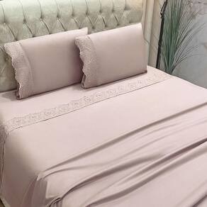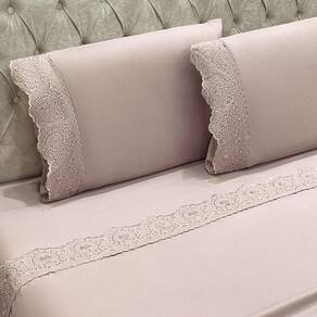 Jogo Cama Lençol Detail King Bordado Guipir Bordado Inglês Percal 300 Fios 4 Peças - Roxo Malva O Jogo de Cama Lençol Detail é a escolha perfeita para quem busca elegância e conforto em cada detalhe. Feito em Percal de Poliéster 300 Fios, traz a suavidade e o toque acolhedor de algodão para noites de sono agradáveis e revigorantes. Seu design sofisticado com bordado inglês adiciona charme ao quarto, elevando a decoração com um toque clássico. Além disso, o lençol de baixo com elástico garante um ajuste perfeito ao colchão, proporcionando praticidade e durabilidade. Transforme seu quarto em um ambiente aconchegante e sofisticado com o Jogo de Cama Detail