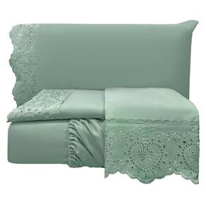 Jogo Cama Lençol Detail Queen Bordado Guipir Bordado Inglês Percal 300 Fios 4 Peças - Verde Menta O Jogo de Cama Lençol Detail é a escolha perfeita para quem busca elegância e conforto em cada detalhe. Feito em Percal de Poliéster 300 Fios, traz a suavidade e o toque acolhedor de algodão para noites de sono agradáveis e revigorantes. Seu design sofisticado com bordado inglês adiciona charme ao quarto, elevando a decoração com um toque clássico. Além disso, o lençol de baixo com elástico garante um ajuste perfeito ao colchão, proporcionando praticidade e durabilidade. Transforme seu quarto em um ambiente aconchegante e sofisticado com o Jogo de Cama Detail