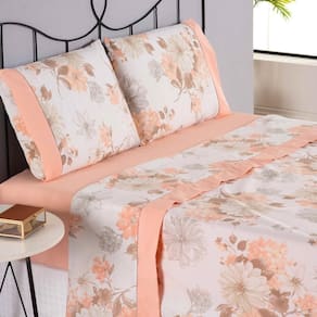 Jogo Cama Lençol Encanto King Estampado Percal 180 Fios com Ponto Palito 4 Peças - Floral - Salmão Transforme a sua cama em um verdadeiro refúgio de conforto e beleza com o Jogo de Lençol Encanto. Confeccionado em percal de 180 fios, este jogo une a suavidade do algodão 80% à resistência do poliéster 20% , garantindo um toque macio e uma durabilidade excepcional.