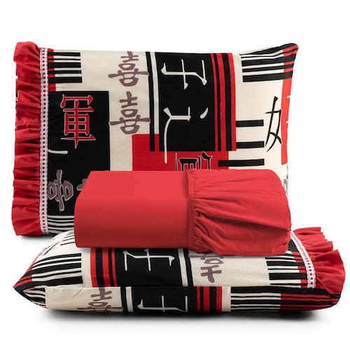 Deixe o visual do seu quarto com o Jogo de Lençol Fiore, confeccionado em Percal 180 fios 100% algodão, que proporciona toque suave, frescor e respirabilidade durante o sono. Suas estampas orientais encantadoras e os delicados babadinhos trazem um toque romântico e elegante à decoração. O lençol de baixo com elástico ajustável garante praticidade e um caimento perfeito ao colchão.