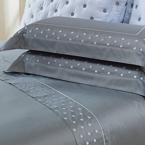 Jogo Cama Lençol Garland Casal Bordado 100% Algodão Acetinado 400 Fios 4 Peças - Cinza