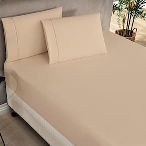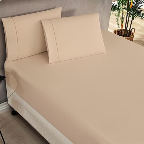 Jogo Cama Lençol Home Basic Queen 180 Fios Com Ponto Palito 3 Peças - Cáqui
