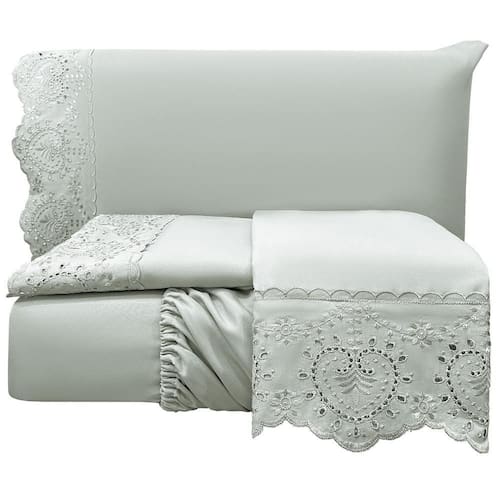 Jogo de Cama Lençol King Nupcial Percal 300 Fios 4 Peças - Cinza