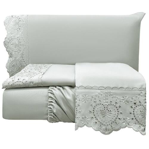 Jogo de Cama Lençol King Nupcial Percal 300 Fios 4 Peças - Cinza Lençol Nupcial Bordado Tecido Toque de AlgodãoTransforme sua noite de núpcias em um momento ainda mais especial com o nosso Lençol Nupcial Bordado. Confeccionado com um tecido de toque suave de algodão, proporciona uma sensação de conforto e frescor incomparáveis.