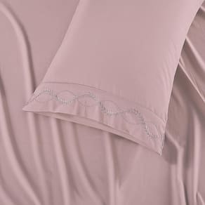 Jogo Cama Lençol Merit Casal Padrão Bordado Coroa de Louros Percal 300 Fios 4 Peças - Roxo Malva Experimente o conforto incomparável do Jogo de Lençol Merit, confeccionado em Percal de Poliéster 300 fios com toque de algodão, oferecendo uma maciez envolvente e duradoura. Esse conjunto é ideal para quem busca um acabamento sofisticado, destacando-se com um bordado exclusivo de coroa de louros, símbolo de vitória e distinção, que confere elegância ao seu ambiente.