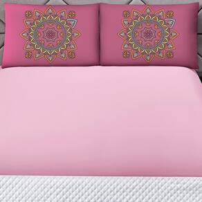 Jogo Cama Lençol Shine Casal Microfibra 180 Fios 3 Peças - Mandala Rosa