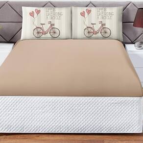 Jogo Cama Lençol Shine Casal Microfibra 180 Fios 3 Peças - Vintage Bike Bege