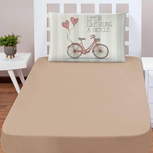 Jogo Cama Lençol Shine Solteiro Microfibra 180 Fios 2 Peças - Vintage Bike Bege