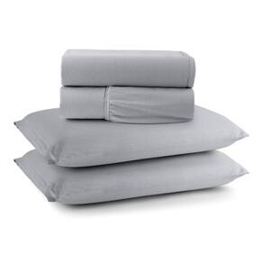 Jogo Cama Lençol Sonnet Casal Padrão Malha Lisa 100% Algodão Macio 4 Peças - Cinza - Única