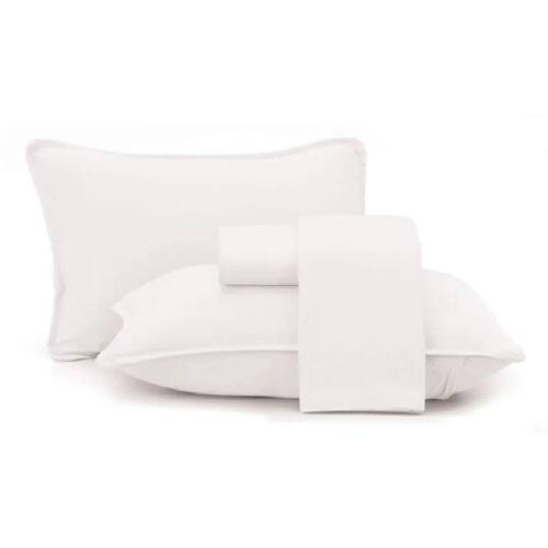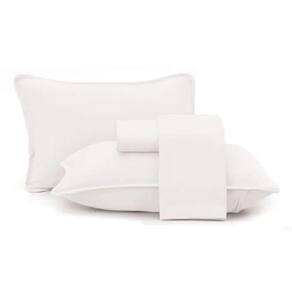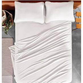 Jogo Cama Queen 4 Pcs Malha Algodão Fio Penteado Branco