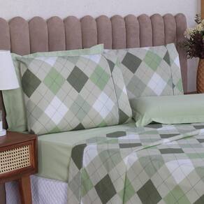 Jogo de Cama Queen 4p Lençol + Fronha Esmeralda Percal 100% Algodão Cor: Xadrez verde Mais beleza para o seu dia a dia e conforto para as suas noites de sono.