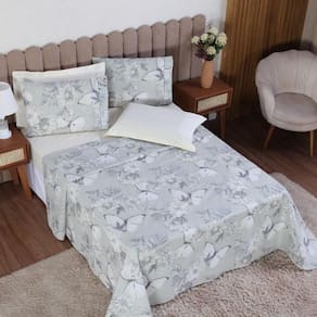 Jogo de Cama Queen 4p Lençol + Fronha Esmeralda Percal 100% Algodão Cor: Borboleta palha Mais beleza para o seu dia a dia e conforto para as suas noites de sono.