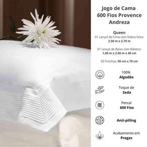 Jogo Cama Queen 600 Fios Andreza 04 Peças Provence Branco