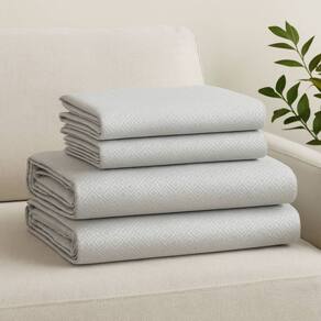 O tecido embossing (relevo acetinado) garante modernidade e estilo, tornando o enxoval mais requintado e aconchegante. Além disso, o lençol com elástico proporciona praticidade, mantendo-se firme no colchão.