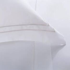 Jogo de lençol acetinado, em 300 fios de puro algodão com fibras longas e tecnologia de ponta. Recebe refinado acabamento em ponto cheio na moldura do sobrelençol e fronhas, criando uma combinação inigualável entre elementos da alta-costura com extremo conforto e maciez, para momentos relaxantes e repletos de bem-estar. Qualidade e design Buddemeyer