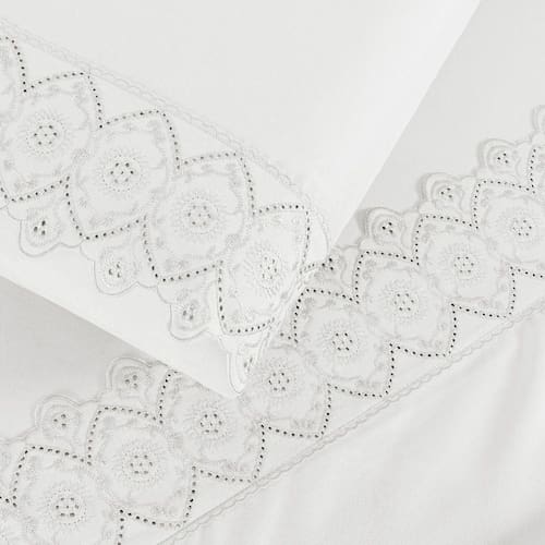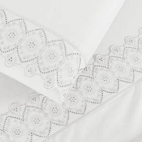 Jogo Cama Queen Cherry Bordado Inglês 4 pçs Offwhi - Branco