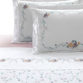 O jogo de cama queen Döhler 200 fios rubi Leonor possui 4 peças, sendo elas: um sobre lençol, um lençol e duas fronhas. O produto, fabricado em 100% algodão, traz conforto e aconchego. Confeccionado com fio penteado, um processo de seleção das fibras e retirada de impurezas, têm um material ainda mais uniforme, de qualidade e com alta resistência. Feito com 200 fios, possui acabamento nobre, conferindo um toque macio. O tecido leve e suave envolverá você em noites tranquilas de sono.Possui uma estampa delicada com desenhos de flores feita com o processo de estamparia digital, que é uma prática sustentável e menos agressiva ao meio ambiente. Além disso, esse tipo de fabricação também traz ao produto um maior detalhamento nos desenhos da estampa, garantindo uma beleza única ao seu jogo de cama.Conteúdo da embalagem: 1 sobrelençol (250 x 270 cm); 1 lençol com elástico (158 x 198 x 40 cm); 2 fronhas (70 x 50 cm)Nº fios: 200 fios