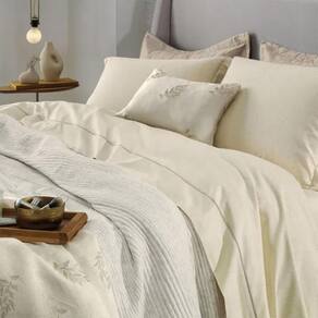 Composição do Tecido: 63% Algodão, 22% Viscose e 15% Linho, oferecendo maciez, leveza e conforto incomparáveis para uma noite de sono relaxante.