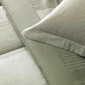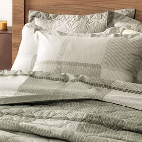 Em tons de verde, este conjunto exala sofisticação. A estampa de padrão geométrico confere um visual distinto e agradável à sua cama. Perfeitamente adaptável a colchões de até 35cm de altura, o lençol de elástico garante um ajuste preciso e sem esforço.