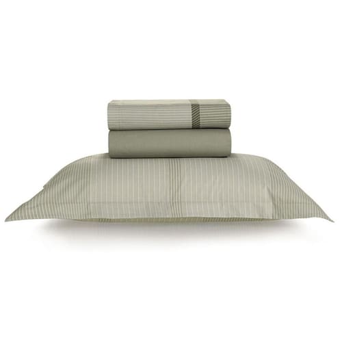 Em tons de verde, este conjunto exala sofisticação. A estampa de padrão geométrico confere um visual distinto e agradável à sua cama. Perfeitamente adaptável a colchões de até 35cm de altura, o lençol de elástico garante um ajuste preciso e sem esforço.
