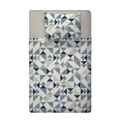 Jogo Cama Solteiro 3Pc Algodão 150 Fios Geo Azul Estamparia