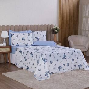 Jogo de Cama Solteiro 4p Lençol + Fronha Esmeralda Percal 100% Algodão Cor: Borboleta azul Mais beleza para o seu dia a dia e conforto para as suas noites de sono.