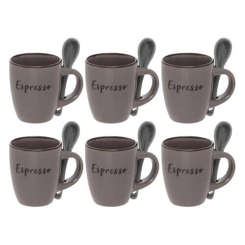 Jogo Xícara Caneca de Café e Chá em Cerâmica com colher 6 peças 100mL - Hauskraft