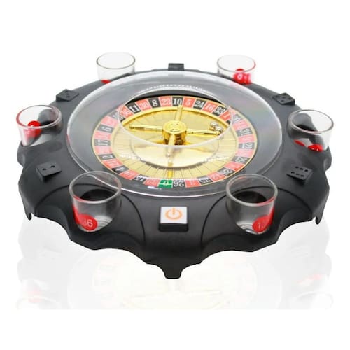 Jogo de roleta para beber shot drink 6 copos automatico O verdadeiro jogo de roleta para beber shot drink: justifica o maior preço porque trabalhamos apenas com matéria-prima de qualidade, ou seja, a qualidade, acabamento e durabilidade deste produto são sem sombra de dúvidas incomparáveis com itens similares da concorrência que ficam disparadamente para trás. Encha os copos com as bebidas e alguns com água se quiser, agora nao precisa mas rodar a roleta ,pos este modelo a pilha ficara girando automaticamente jogando a bolinha em seguida, o número que cair corresponderá ao copo que o jogador deverá tomar. Um produto ideal para quem curte jogar e beber entre amigoseste jogo não é recomendado para menores de 18 anos Especificações técnicas: - dimensão do produto: roleta: 26,5cm de diâmetro x 27 cm de altura sem os copos - copos: 3,5 cm de diâmetro boca x 4,7 cm de altura - material: base pvc; copo de vidro - cor: preto, vermelho e dourado - alimentação: 2 pilhas aa não inclusas Itens inclusos:- 1 roleta numerada de 0 a 36 - 6 copos - 2 bolas pequenas Tags: jogo cassino roleta shot,jogo de cassino roleta shot drink,jogo de cassino roleta shot,jogo de roleta para beber,jogo da roleta beber drink,jogo de roleta com copos,roleta de cassino com copos de shot Todos nossos produtos tem e Marca: Não Informado Ean: 7899432898582