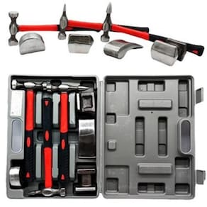 Jogo Chapeador Para Reparo Automotivo MtxJogo chapeador para reparos automotivos mtx com 3 martelos e 4 tassos, indicado para funilarias em geral, martelinhos de ouro, oficinas e funilarias artesanais. Características do jogo chapeador para reparos automotivos mtx- fabricado em aço especial de ótima resistência;- martelos com cabo emborrachado de ótima qualidade;- acompanha maleta plástica para armazenamento e transporte;- ideal para funilarias em geral. Jogo chapeador para reparos automotivos mtx contendo 07 peças:- 01 tasso curva;- 01 tasso salto;- 01 tasso trilho;- 01 tasso duplo;- 01 martelo pena reta;- 01 martelo face plana;- 01 martelo com ponta curta. Medidas e pesos das peças do jogo chapeador para reparos automotivos mtx- tasso curva: 3,5cm x 12cm (cxa) peso: 775g- tasso salto: 5cm x 7cm (cxa) peso: 604g- tasso trilho: 6cm x 7,5cm (cxa) peso: 770g- tasso duplo: 7cm x 6cm (cxa) peso: 878g- martelo pena reta: 10,5cm x 28cm peso: 370g- martelo face plana: 9,5cm x 29cm peso: 420g- martelo com ponta curta: 12,5cm x 28,5cm peso: 370g- medida da maleta plástica com as 7 peças: 35cm x 25cm x 8cm (cxlxa)- peso da maleta plástica com as 7 peças: 5kg Imagens meramente ilustrativas, os produtos, cores e gráficos podem diferir dos apresentados.