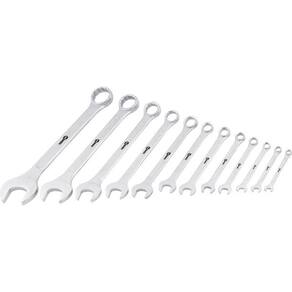 Jogo Chave Combinada 6-32mm Aço Carbono Com 12 Peças Suporte Conteúdo da embalagem 1 Jogo de chaves combinadas, composto por um suporte plástico com 12 peças, sendo: 6 mm, 7 mm, 8 mm, 10 mm, 11 mm, 13 mm, 14 mm, 17 mm, 19 mm, 22 mm, 27 mm e 32 mm Aplicações e dicas de uso Indicado para apertar e soltar porcas e parafusos sextavados. Nunca utilizar prolongadores sobre as chaves, pois isso aumentará o torque aplicado e diminuirá a vida útil das ferramentas. Uso leve. Destaques e diferenciais Possui acabamento cromado fosco, proporcionando maior resistência contra oxidação/corrosão. Combina na mesma chave um lado fixa e outro estrela, possibilitando aplicações em locais de difícil acesso. DETALHES TÉCNICOS