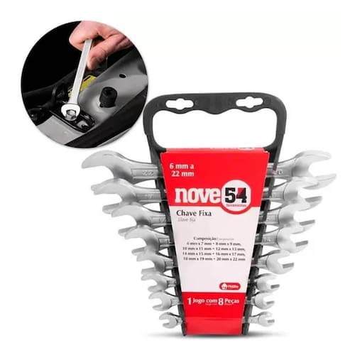 COMPOSTO POR: - 01 Chave FIXA 6 mm x 7 mm - 01 Chave FIXA 8 mm x 9 mm - 01 Chave FIXA 10 mm x 11 mm - 01 Chave FIXA 12 mm x 13 mm - 01 Chave FIXA 14 mm x 15 mm