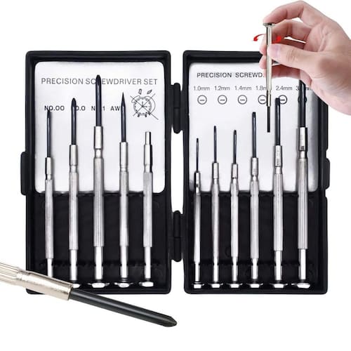 Kit jogo de chave precisão reparo relógio relojoeiro 11 pçs fertak O kit jogo de chave de precisão para reparo de relógios da fertak é uma ferramenta essencial para entusiastas de relojoaria, relojoeiros profissionais e qualquer pessoa que deseje realizar reparos em relógios com precisão e facilidade. Este conjunto de 11 peças oferece um conjunto versátil de chaves de fenda e outras ferramentas, cuidadosamente projetadas para atender às demandas de trabalhos delicados e minuciosos em relógios. Características - adequado para e amador - apoio superior giratório - haste de aço cromado com ranhuras para maior aderência e transmisão de força - ideal para substituir baterias, ajustar pulseiras, fazer reparos em movimentos internos Ficha técnica Material da ponta: aço temperado de alta qualidade Estojo incluso: sim Marca: fertak Itens inclsuos 03 chaves philips: ph 00, ph 0 e ph 1 01 chave pontuda 01 chave com ponta achatada 06 chaves de fenda: 1, 1.2, 1.4, 1.8, 2.4 e 3mm Sobre a fertak A fertak, fundada em 2010 no espírito santo, é uma empresa líder na importação e distribuição de ferramentas manuais no brasil, com foco em atendimento excepcional e qualidade dos produtos. Busca continuamente e mantém o alto padrão de atendimento, qualidade nos produtos oferecidos e ética com seus parceiros. Marca: Não Informado Ean: 7908642006165