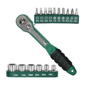 Jogo de chave soquete catraca tipo cachimbo kit 17 peças - fr19 Ideal para a casa, oficina de garagem, metal/madeira, construtores, mecânica, amadores, reparos em geral e etc. Características: - design inovador e extensível.- os soquetes possuem perfil sextavado com acabamento niquelado.- a catraca possui cabo emborrachado para melhor conforto e segurança.- observação: alguns detalhes de ferrugem que não comprometem o uso das ferramentas. apenas detalhes estéticos, podendo usar normalmente. Informações técnicas: - um ótimo jogo no quesito custo x benefício.- com 17 peças, ele é a ferramenta ideal para o dia a dia.- chave catraca reversível de 1/4''.- soquetes: 5, 6, 8, 10, 11 e 13mm.- bits phillips: ph0, ph1, ph2 e ph3.- bits fenda: 3, 4 e 5mm.- bits hexagonal: h3, h4 e h5. Itens inclusos: - 1 chave catraca reversível de 1/4''.- 6 soquetes: 5, 6, 8, 10, 11 e 13mm.- 4 bits phillips: ph0, ph1, ph2 e ph3.- 3 bits fenda: 3, 4 e 5mm.- 3 bits hexagonal: h3, h4 e h5. Marca:Importado Modelo:Fr19 Garantia:03 (três) meses de garantia contra defeitos de fabricação. Imagens meramente ilustrativas.