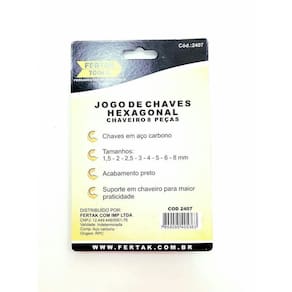 - Tipo: Chaveiro com 08 Chaves Hexagonais