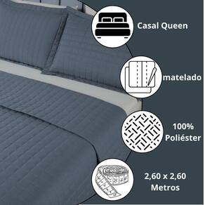 Jogo Cobre Leito Queen Copacabana 3 Pçs Premium Matelado 300 Fios Variação: Azul Olá Você deseja transformar o seu quarto em um espaço de puro conforto e sofisticação Então você vai amar o Kit 3 Peças Cobre Leito Casal Queen Copacabana Matelado Percal 300 Fios. Muitas pessoas sentem que a roupa de cama não transmite o estilo e aconchego que desejam. É justamente para isso que o Cobre Leito Copacabana foi desenvolvido: unir design premium, maciez e durabilidade em um único produto. O que nossos clientes dizem: Deixou meu quarto com um ar de hotel, estou encantada com o toque macio. - Vanessa M. Produto resistente e elegante, vale cada centavo. - Rodrigo F. Fácil de lavar e seca rápido, além de muito bonito. - Aline C. Especificações do Produto: 01 Cobre leito matelado 2,60 m x 2,60 m 02 Porta-travesseiros 70 cm x 50 cm, com aba americana Material: Tecido percal 300 fios 100% poliéster premium Enchimento: 100% poliéster Design matelado de alto padrão Disponível em diversas cores para combinar com seu ambiente : 3 meses contra defeitos de fabricação, trazendo total segurança para sua compra. Garanta já o seu e transforme suas noites de sono em uma verdadeira experiência de bem-estar. Agradecemos a sua visita à Atual Ecommerce Características do produto: Kit completo 3 peças Design sofisticado e matelado Tecido premium percal 300 fios Toque macio e aconchegante Fácil de combinar com diferentes estilos Características técnicas do produto: Dimensões cobre leito: 2,60 x 2,60 m Dimensões porta-travesseiros: 70 x 50 cm com aba americana Composição: 100% poliéster percal 300 fios Enchimento: 100% poliéster Matelado em costura Marca: Não Informado