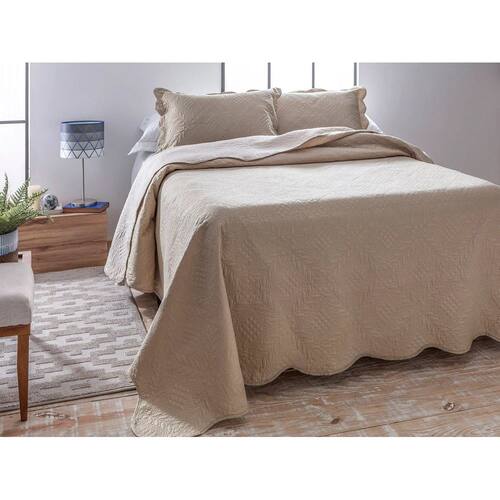 Jogo Colcha Cobre Leito Lisa Dupla Face Ultrasonic - Jolitex Bege Pastel - Queen -