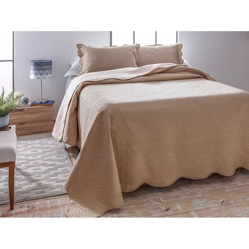 Jogo Colcha Cobre Leito Lisa Dupla Face Ultrasonic - Jolitex Noz Moscada - King -