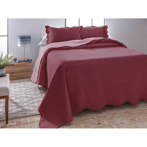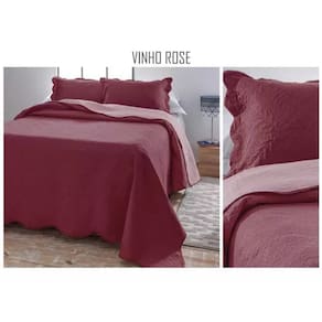 Jogo Colcha Cobre Leito Lisa Dupla Face Ultrasonic - Jolitex Vinho/Rosê - Queen -